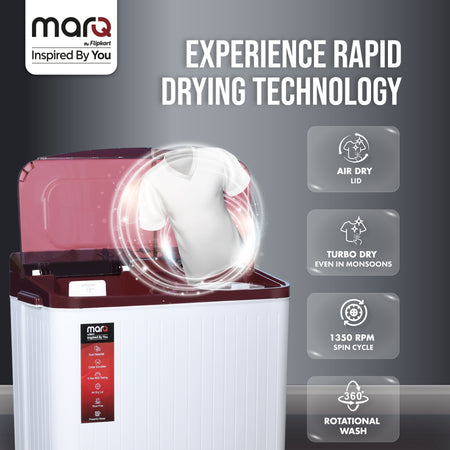 MarQ by Flipkart 10 kg Semi Automatic Top Load Washing Machine Maroon, White (MQSA1005NNNKM)