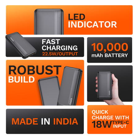 MarQ by Flipkart 10000 mAh 22.5 W Power Bank (Black, Lithium Polymer, Power Delivery 3.0, Quick Charge 3.0, Fast Charging for Earbuds, Mobile, Smartwatch, Speaker, Tablet, Trimmer)
