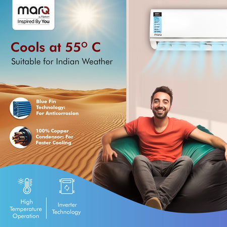 MarQ by Flipkart 2025 1.5 Ton 5 Star Split Inverter 5-in-1 Convertible with Turbo Cool Technology AC - White (155IPG25WQ, Copper Condenser)