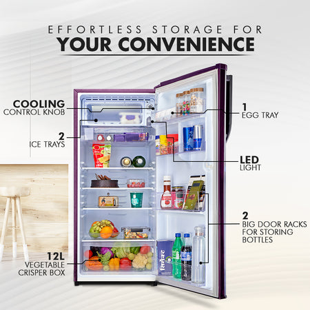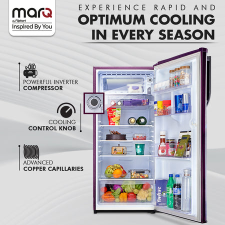 MarQ by Flipkart 208 L Direct Cool Single Door 2 Star Refrigerator with Powerful Inverter Compressor & Large Vegetable Basket (Merlot Bloom, 205BD2MQ24-TWA)