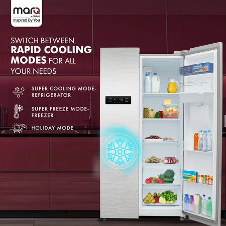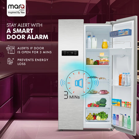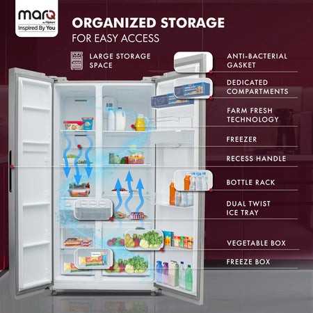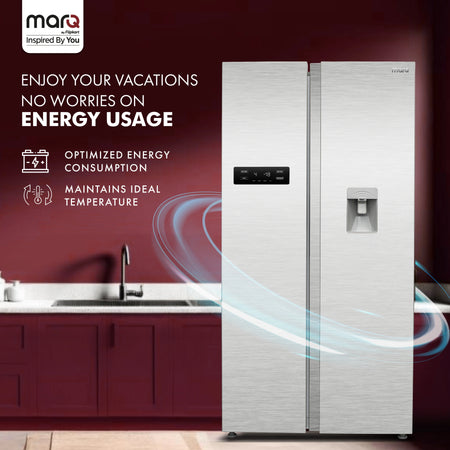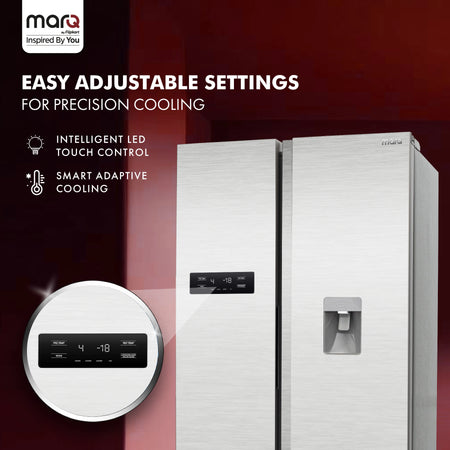 MarQ by Flipkart 584 L Frost Free Side by Side Refrigerator with Water Dispenser, Fresh Lock and Multi Airflow Technology (Silver, 584MS025MQSD)