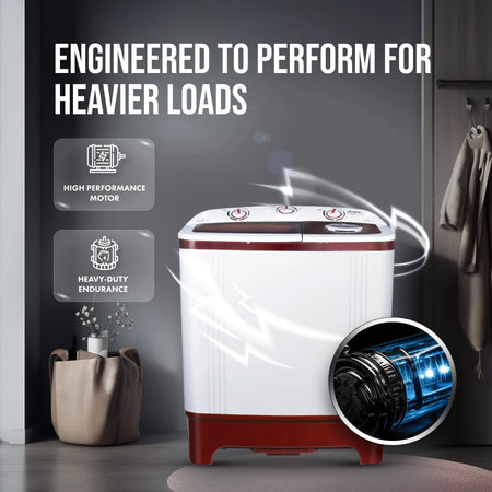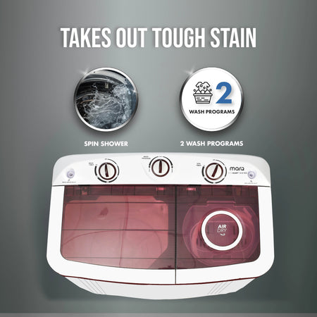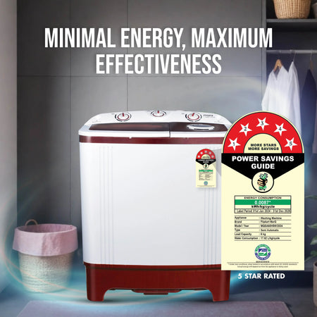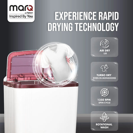 MarQ by Flipkart 6 kg 5 Star Rating Innowash Range Semi Automatic Top Load Washing Machine White, Maroon (MQSA605NNNDM / MQSA60H5W)