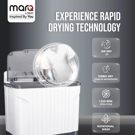 MarQ by Flipkart 9 kg 5 Star Rating Innowash Range Semi Automatic Top Load Washing Machine White, Grey (MQSA905NNNDG)