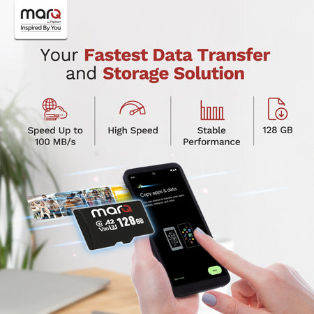 MarQ by Flipkart MQMC_128_UVC A2 128 GB MicroSDXC Class 10 70 MB/s Memory Card Compatible with Mobile, Tablet