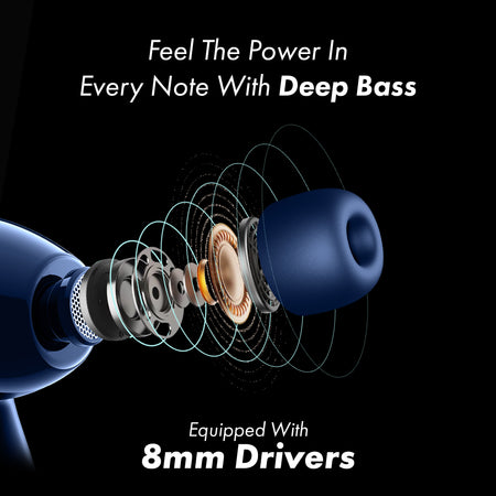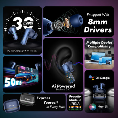 MarQ by Flipkart Rhythm Q0824 30 Hours Playtime Type C Fast Charging Bluetooth Dual Mic ENC Bluetooth (Blue, True Wireless)