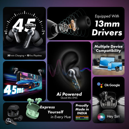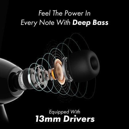 MarQ by Flipkart Rhythm Q1324 45 Hours Playtime Type C Fast Charging Bluetooth Quad Mic ENC Bluetooth (Black, True Wireless)