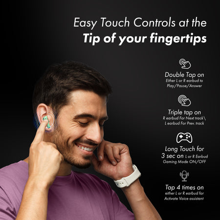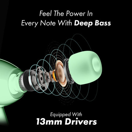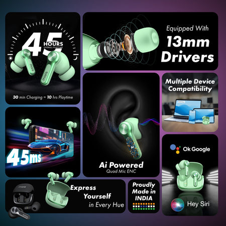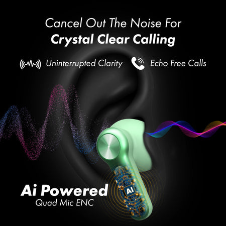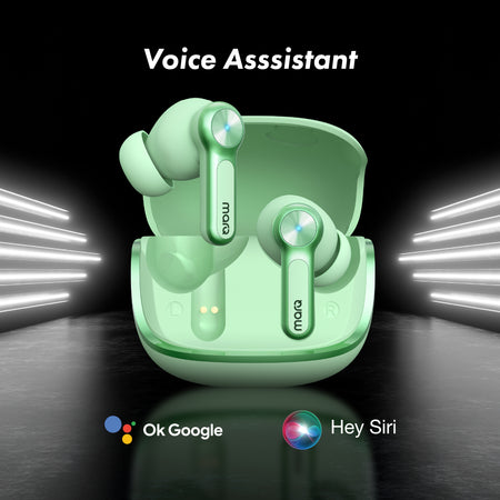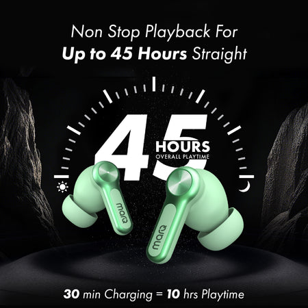 MarQ by Flipkart Rhythm Q1324 45 Hours Playtime Type C Fast Charging Bluetooth Quad Mic ENC Bluetooth (Green, True Wireless)