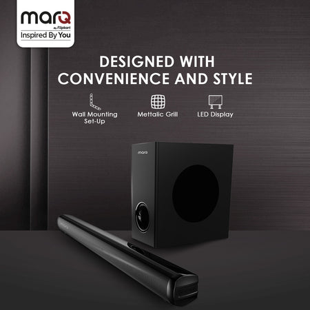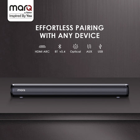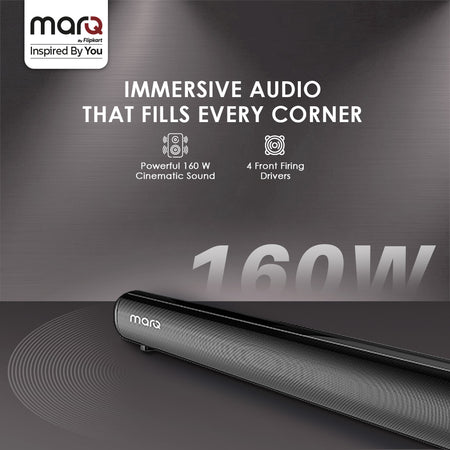 MarQ by Flipkart Thunder 160, 160 Watts, 2.1 Channel, Immersive cinematic experience, EQ Modes 160 W Bluetooth Soundbar (Black, 2.1 Channel)