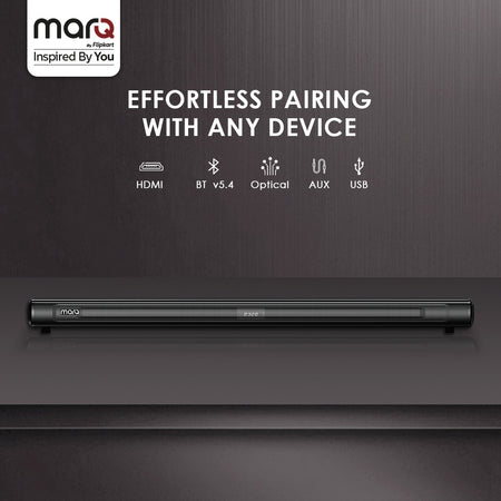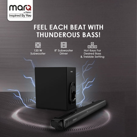MarQ by Flipkart Thunder 200, 200 Watts, 2.1 Channel, Immersive cinematic experience, EQ Modes 200 W Bluetooth Soundbar (Black, 2.1 Channel)