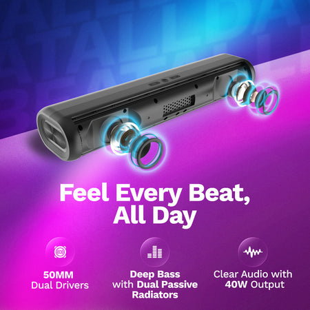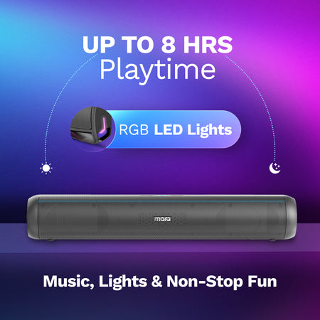MarQ by Flipkart Thunder with Dual Drivers, Upto 8Hrs of Playback, RGB LED lights 40 W Bluetooth Soundbar (Black, 2.0 Channel)