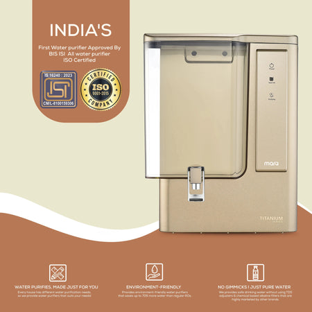 MarQ by Flipkart Titanium Golden India 1st BIS (IS 16240 :2023) CM/L8100159306 8 L RO + UV + UF + TDS + ALK + Copper Water Purifier (Golden)